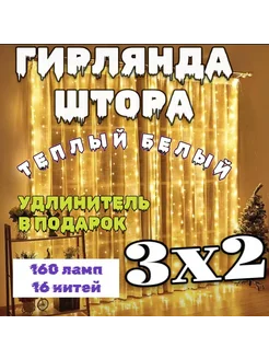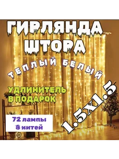 Гирлянда штора на окно 1,5х1,5 теплый белый