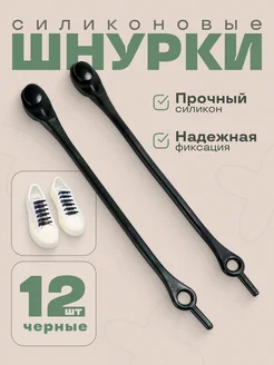 Силиконовые шнурки для кроссовок черные набор 12 штук