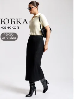 Юбка женская осень теплая длинная миди вязаная зимняя