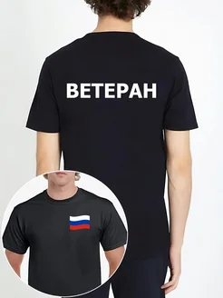 Футболка Ветеран российский флажок Россия черная русский
