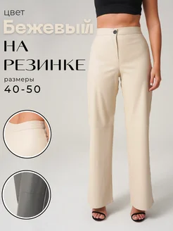 Брюки палаццо из эко-кожи бежевые