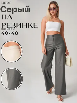 Брюки палаццо из эко-кожи серые