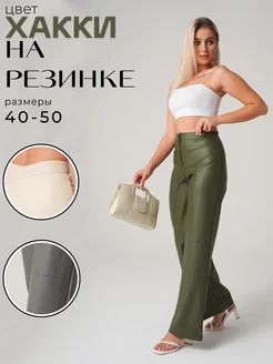 Брюки палаццо из эко-кожи хаки