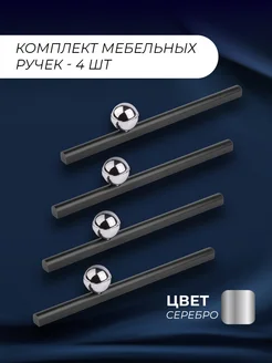 Ручка мебельная Шар, черный-серебро, 213 (192 мм), 4 шт