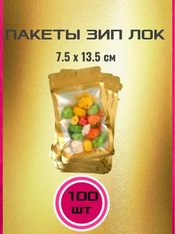 Zip Lock зип лок пакеты с окном 7 5х13 5 см золотые 100 шт