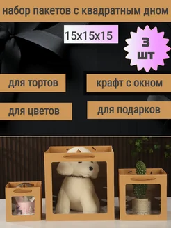 Пакет с квадратным дном для торта крафт с окном 3 шт