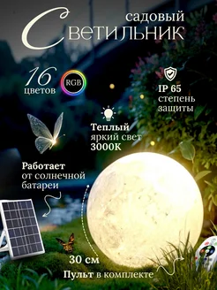 Уличный садовый светильник "Луна" 30 см на солнечной батарее