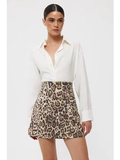 Леопардовая юбка мини замшевая