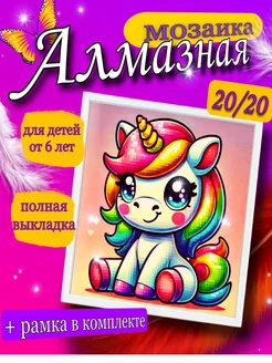 Алмазная мозаика для детей в рамке 20х20 Единорожка