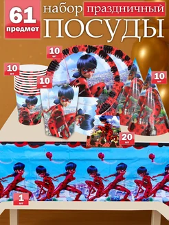 Одноразовая посуда для праздника Леди Баг 61 шт