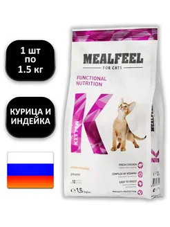 1 шт, 1,5 кг, Сухой корм, Котятам, Курица, Индейка
