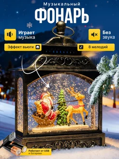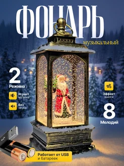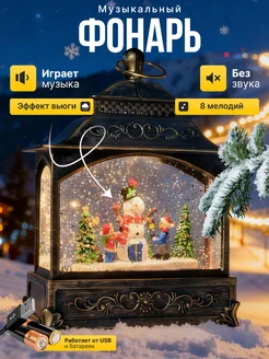 Фонарь новогодний музыкальный светильник со снегом подарок
