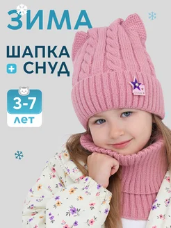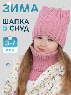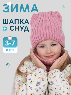 Зимняя шапка на завязках и снуд детский