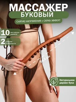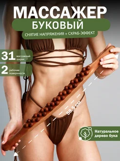 Массажер скалка Гуаша из бука 31 шарик