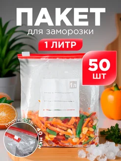 Зип-пакеты пищевые для заморозки с застежкой-слайдер 1л 50шт