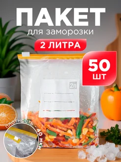 Зип-пакеты пищевые для заморозки с застежкой-слайдер 2л 50шт