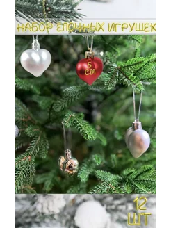Ёлочные украшения, набор новогодних игрушек сердечки 12шт