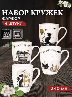 Набор кружек фарфоровых Кошки 340 мл 4 шт