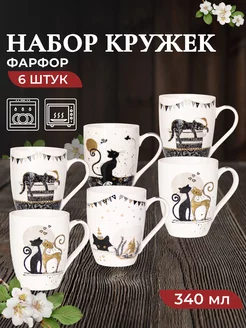 Набор кружек фарфоровых Кошки 340 мл 6 шт