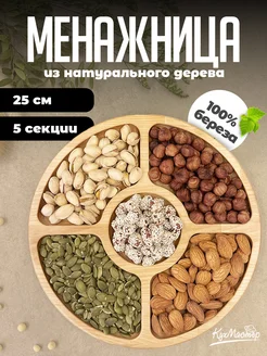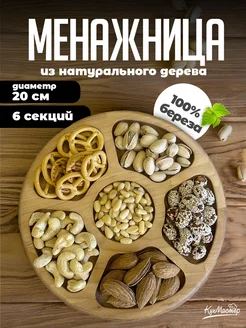 Менажница деревянная круглая для закусок орехов