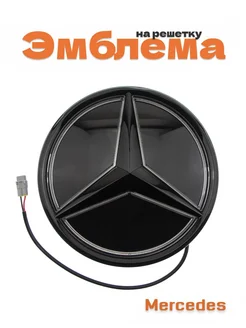 Эмблема на решетку для Mercedes черная с белой подсветкой