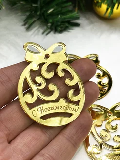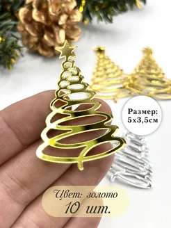 Новогодний топпер Елочка для торта, акрил, золото, 10 шт