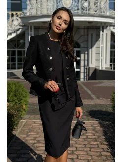 Твидовый костюм с платьем, деловой, офисный стиль