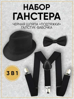 Набор Ганстер - Шляпа+Подтяжки+Бабочка