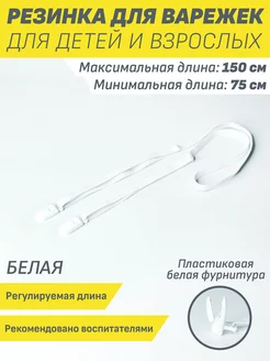 Резинка для варежек и перчаток с креплениями белая