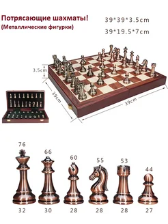 Шахматы подарочные. Металл. фигурки, доска дерево (39x39см)