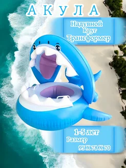 Надувной круг для плавания акула с козырьком