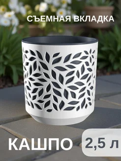 Кашпо, горшок для цветов с вставкой Листья 2,5 л Белый,серый