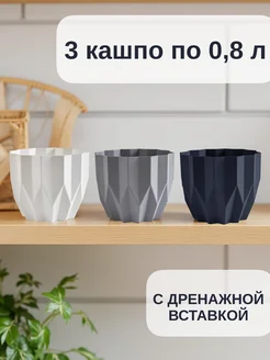 Кашпо для цветов, фиалки, кактусов Геометрия 3 шт по 0.8 л