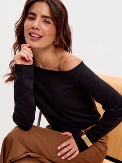 Лонгслив на осень с открытым плечом черный