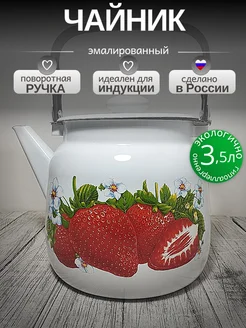 Чайник эмалированный 3,5 литра, Сочная клубника, индукция