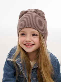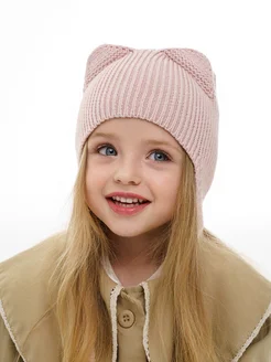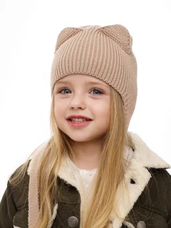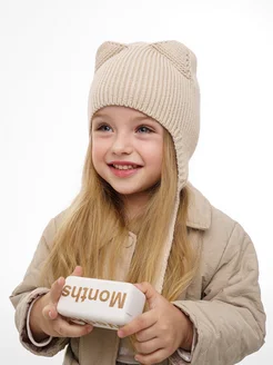 Шапка чепчик с ушками осенняя вязаная на завязках
