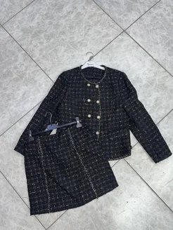 Костюм двойка из твида жакет и юбка с подкладной