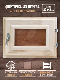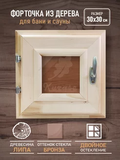 Окно для бани форточка деревянная 30х40 липа, бронза