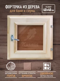 Окно для бани деревянное форточка парной 40х40 липа, бронза