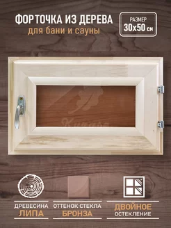 Окно для бани деревянное форточка парной 30х50 липа, бронза