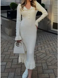 Платье вязаное лапша с воротником облегающее винтажное y2k