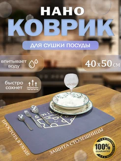 Коврик для сушки посуды впитывающий 40х50 см голубой