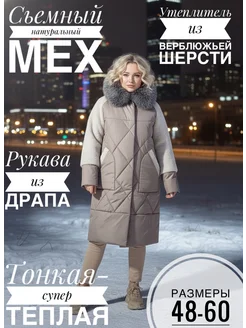 Пальто зимнее стеганое с мехом больших размеров