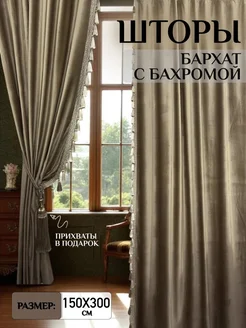 Шторы Бархат Блэкаут с бахрамой комплект 150х300