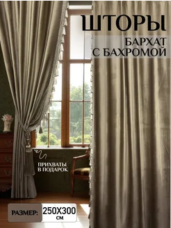 Шторы Бархат Блэкаут с бахрамой комплект 250х300