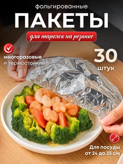 Фольга на резинке на тарелку 30шт многоразовые