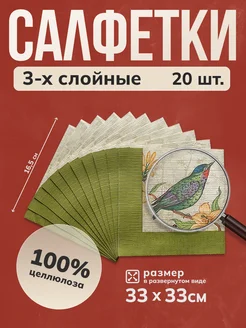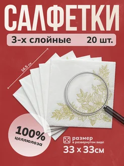 Салфетки бумажные праздничные на стол 3 слоя 33х33 20 шт