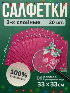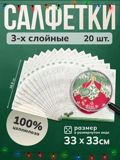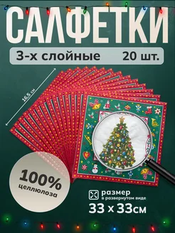 Салфетки бумажные новогодние на стол 33х33 20шт трехслойные