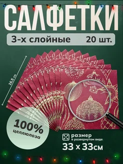 Салфетки бумажные праздничные 3 слоя 33х33 20 шт