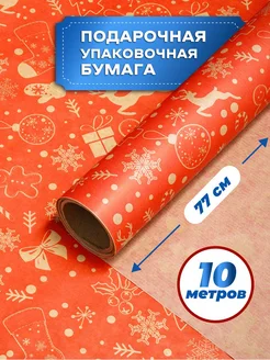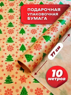 Упаковочная бумага для подарков крафт новогодняя 10м